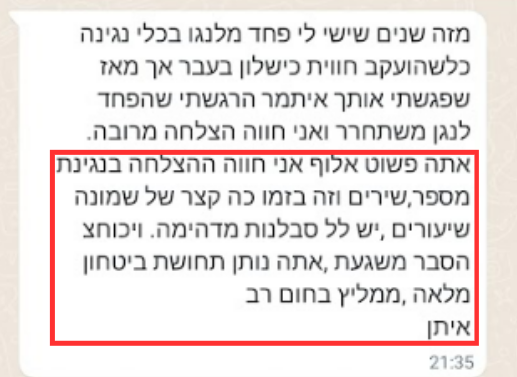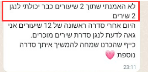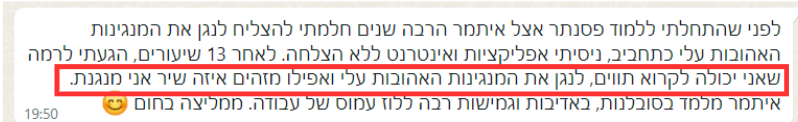 "אני חווה הצלחה בנגינה בזמן קצר של 8 שיעורים.."