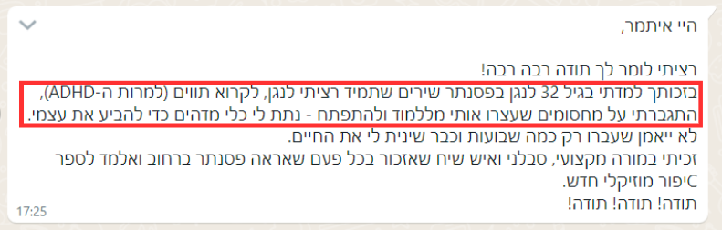 "בזכותך למדתי בגיל 32 לנגן בפסנתר.. למרות ה-ADHD.."