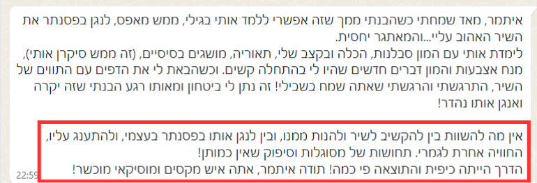 "לא האמנתי שתוך 2 שיעורים כבר יכולתי לנגן 2 שירים.."
